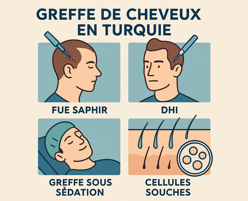 Greffe de Cheveux en Turquie : FUE Saphir, DHI, Cellules Souches et Sédation – La Solution Naturelle chez byhairclinic